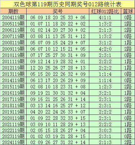 福彩双色球第2025119期历史同时王守礼012路奖号遗漏分析: