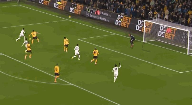 伤停补时阶段,狼队在禁区内制造杂沓词语,无东说念主盯防的沃尔费挑射将球打进。狼队3比4再追一球。